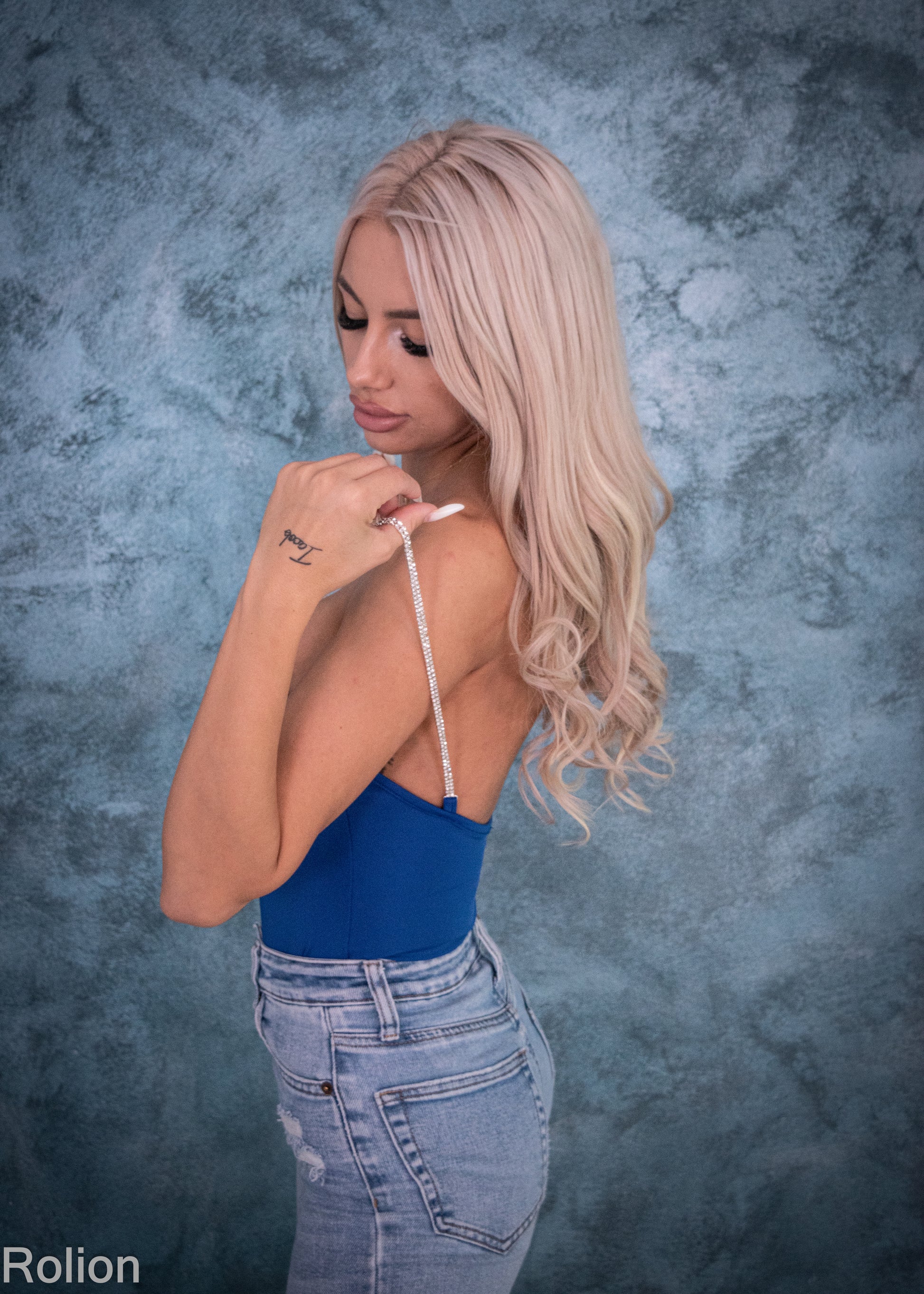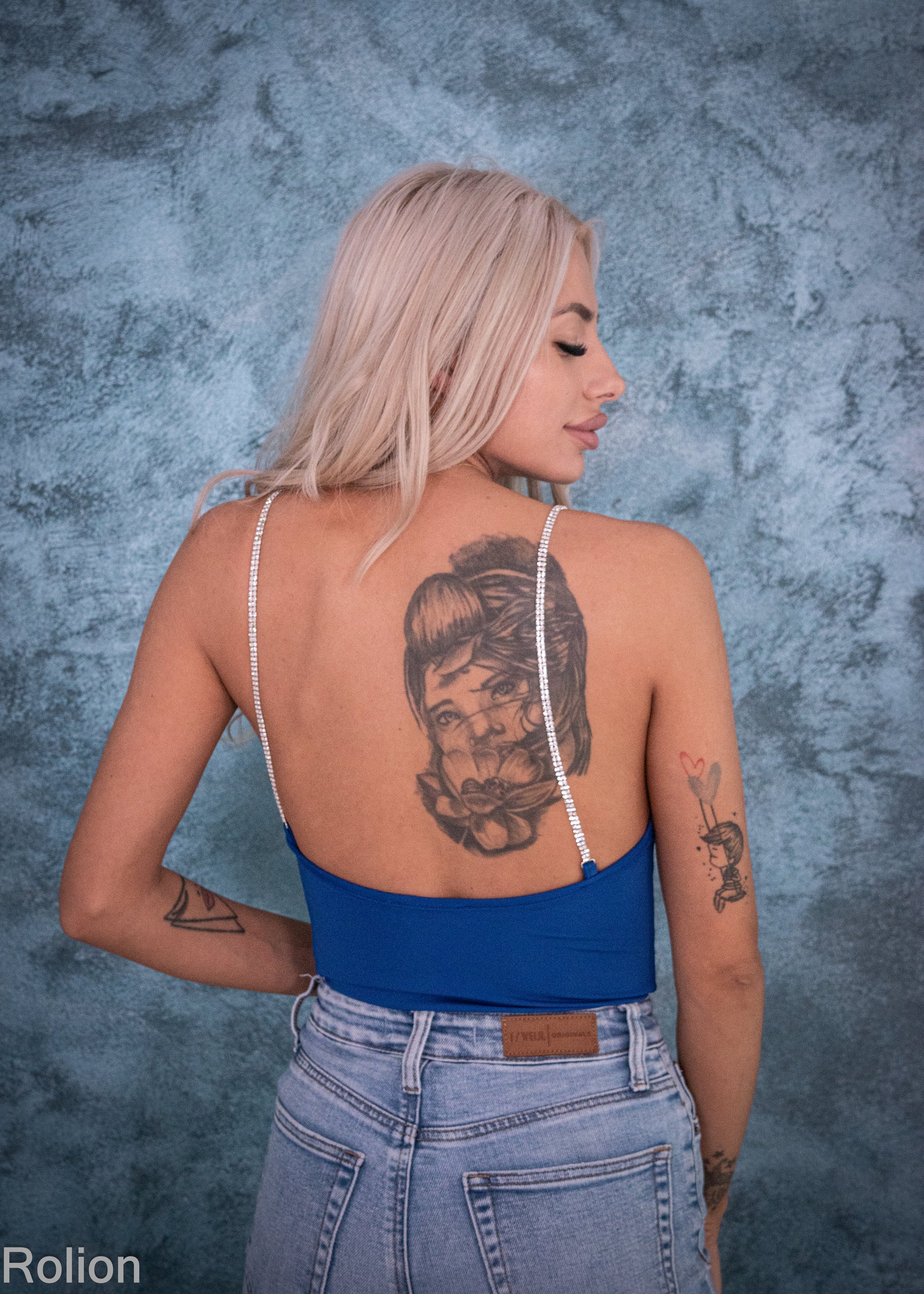 Body albastru cu bretele subțiri – perfect pentru ținute de zi sau club